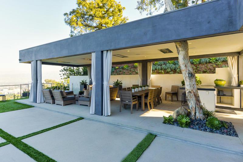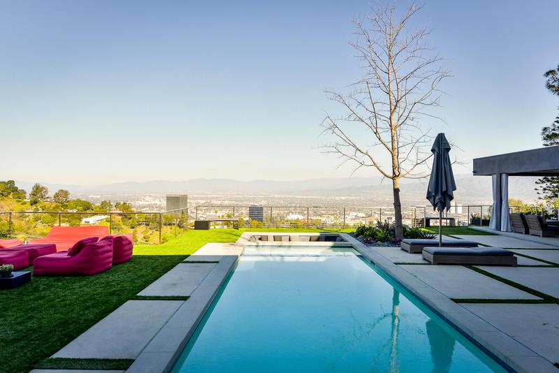 Modern Event Estate Rental Hollywood Hills is a beautiful modern property with amazing views of the San Fernando Valley and Universal Studios. At night, you can enjoy the fire works (they last a few minutes) from Universal Studios theme park, as well as sweeping views of the Valley. This home has a modern design with a swimming pool, large cabana, fire pit and the home has an open floor plan. Ideal for a special event or high-end wedding reception.